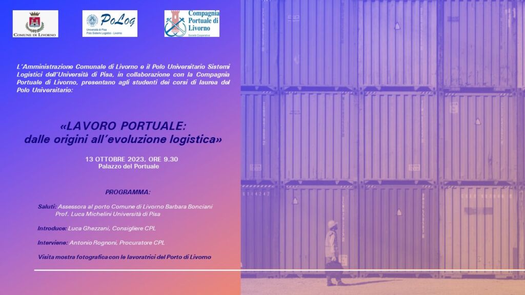 LIVORNO, 13 OTTOBRE 2023_L’Amministrazione Comunale di Livorno e il Polo Universitario Sistemi Logistici dell’Università di Pisa, in collaborazione con la Compagnia Portuale di Livorno, hanno presentato agli studenti dei corsi di laurea del Polo Universitario, il Lavoro Portuale, dalle origini all’evoluzione logistica. Promotori del progetto, l’Assessora al porto del Comune di Livorno Barbara Bonciani e […]